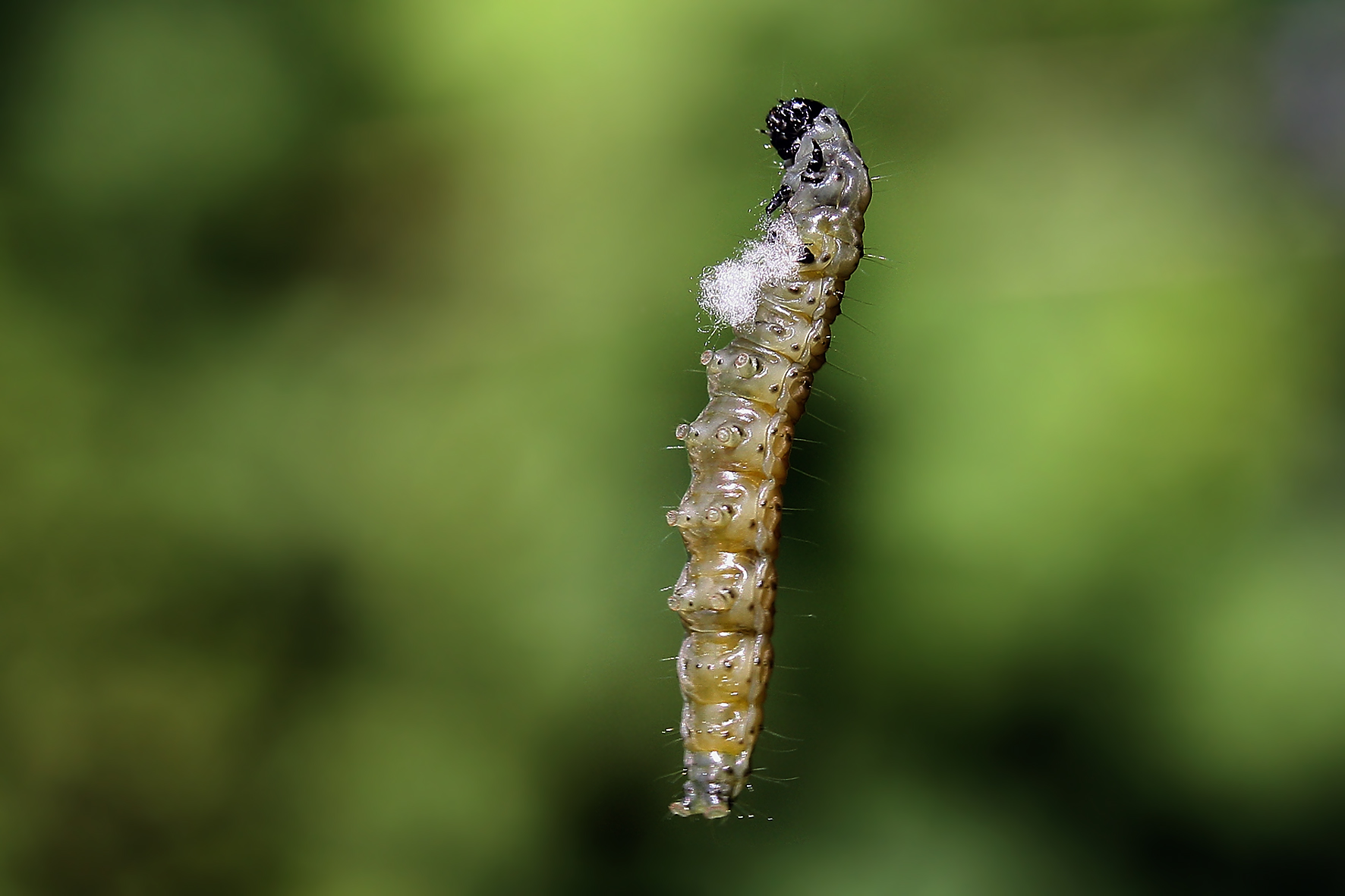 Soms danst het mij voor de ogen. Zoals dit rupsje van het een of ander. Het leek door de lucht te zweven en hing letterlijk aan een zijden draadje…