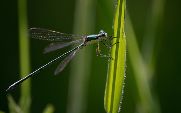 Op grond van de beschrijving op Libellennet denk ik dat dit geen gewone (Lestes sponsa) maar een tengere (Lestes virens) pantserjuffer is:
