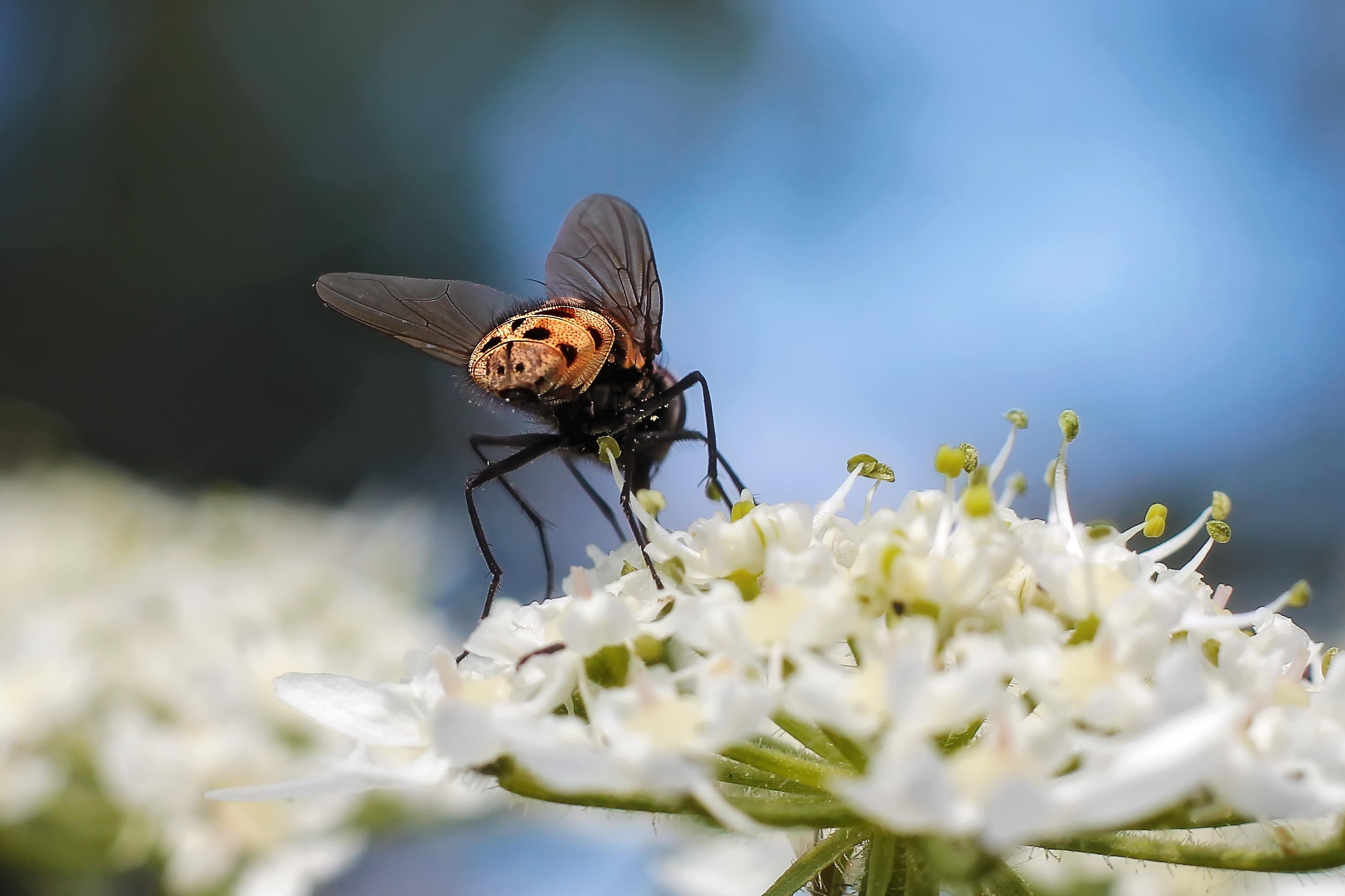 Nogmaals de Graphomya maculata die, hoe je hem ook bekijkt, van alle kanten even fraai is.