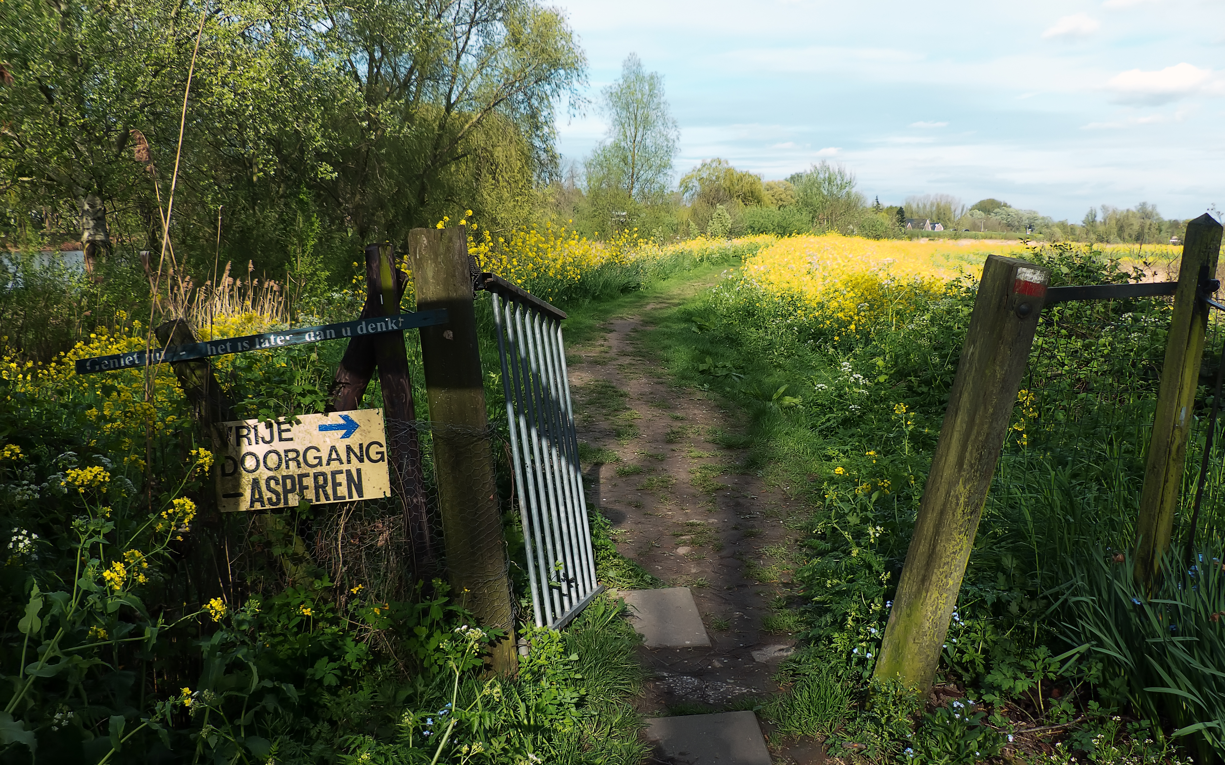 Vergeet de tekst boven “Vrije doorgang Asperen” niet.