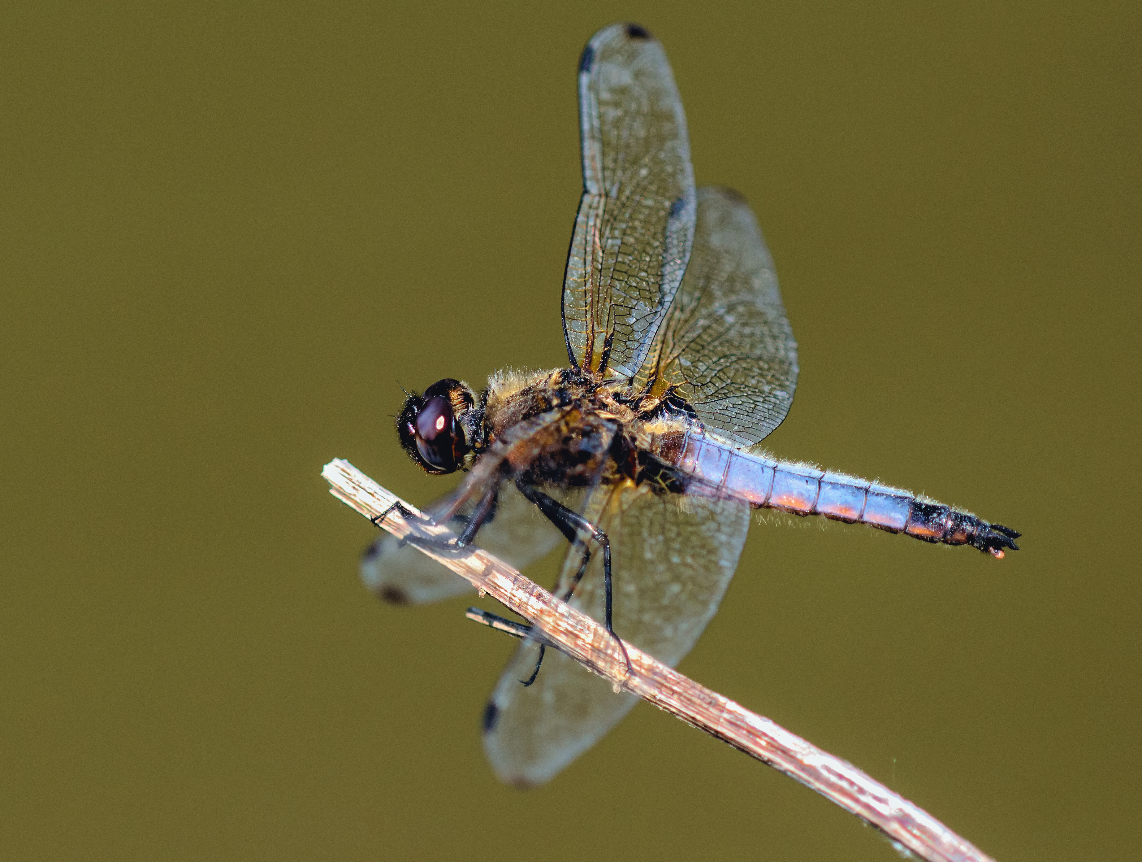 Er zijn nogal wat libelles waarvan (bij de mannetjes) de achterlijfsegmenten blauw berijpt zijn: gewone oeverlibel, platbuik, bruine korenbout …