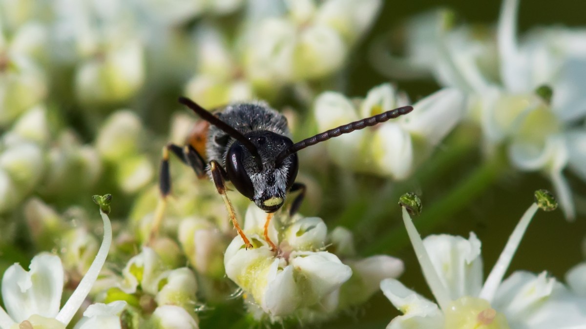Hier wordt het pas echt lastig. Zelf dacht ik aan een bloedbij vanwege de rode achterlijfsegmenten. Maar Sandra zegt dat dit een groefbij is, en dus is dat zo 🙂