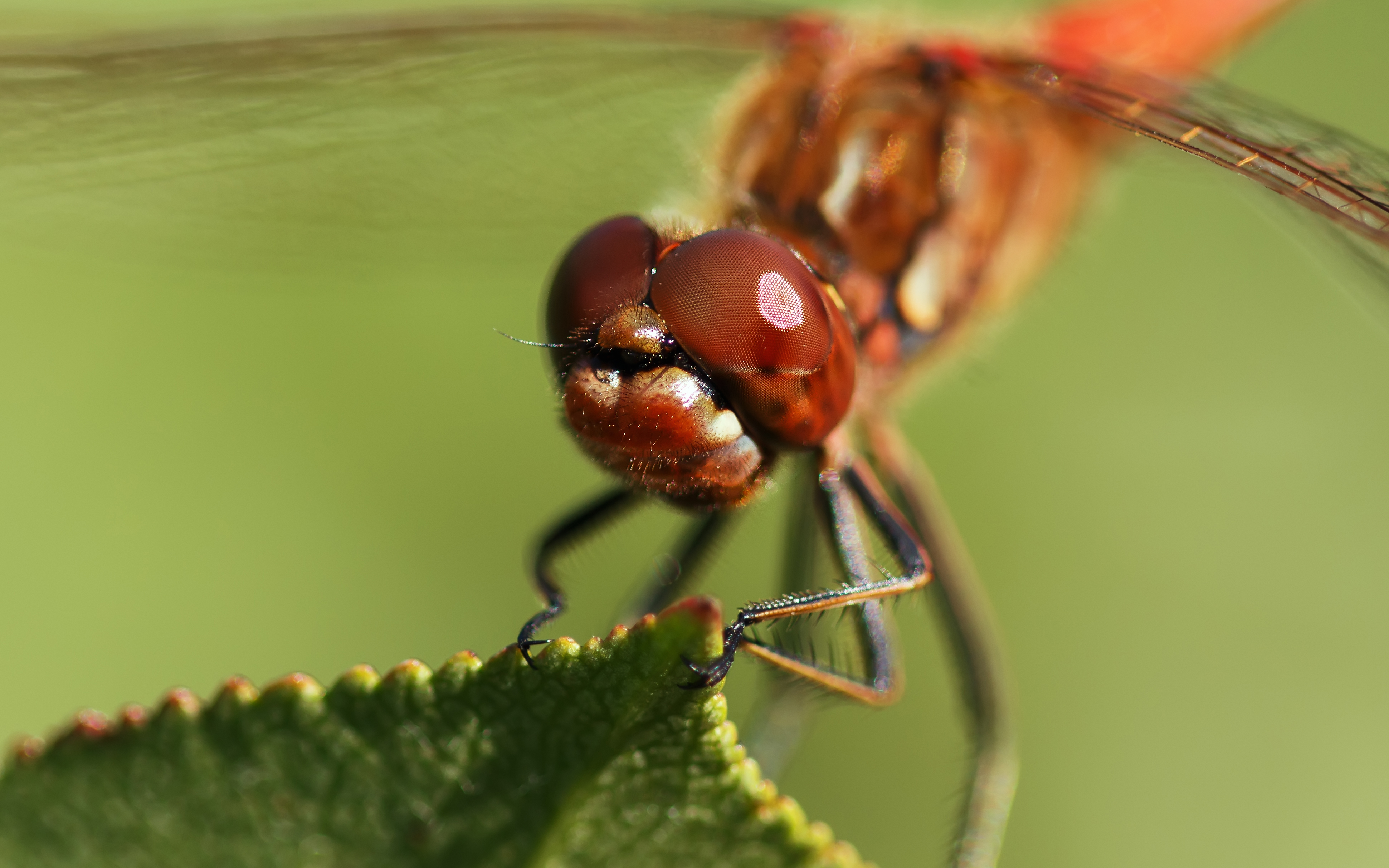 Op deze foto is de ‘snor’ (het nog een stukje langs de ogen doorlopende zwarte streepje), waardoor de steenrode zich van de bruinrode heidelibel onderscheidt, wat beter te zien.