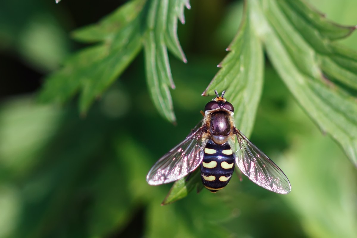 lijkt me een kommazweefvlieg, of toch een gele halvemaanzweefvlieg?