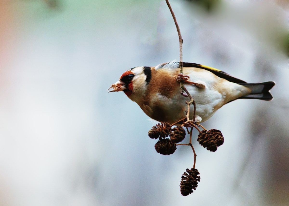 Deze distelvink zat weliswaar niet in mijn tuintje, maar het scheelde toch niet veel. Langs de gracht bij mij in de straat staat een rijtje zwarte elzen: een vaste foerageerplek voor distelvinkjes.