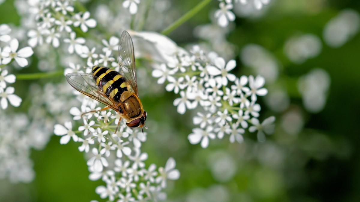 4 Bandzweefvlieg (Syrphus), mogelijk bessenbandzweefvlieg (Syrphus ribesii)