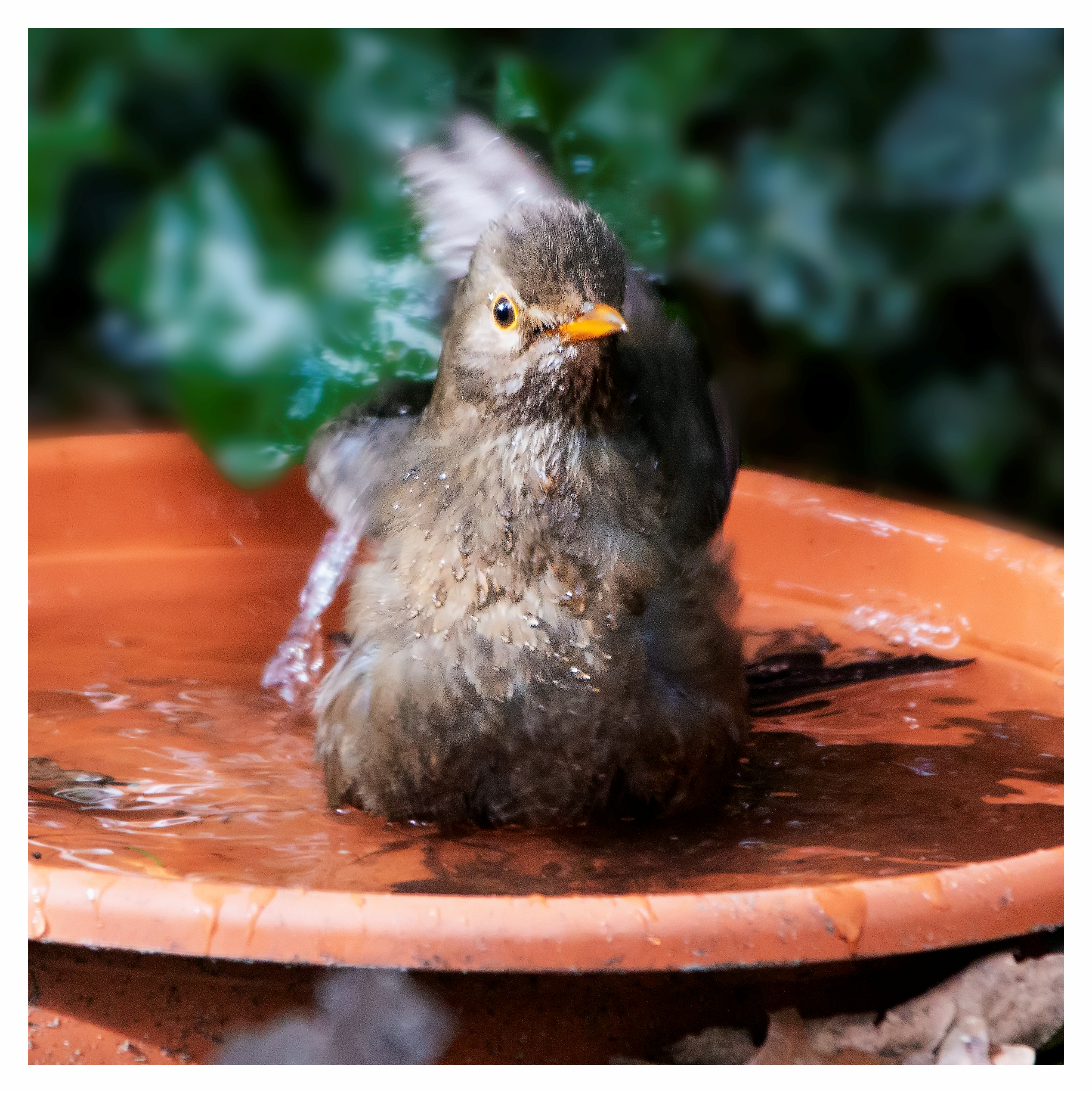 Deze badderende vrouwtjesmerel in mijn achtertuin heeft het usutuvirus vaccinloos overleefd. Dat geeft de burger moed 🙂