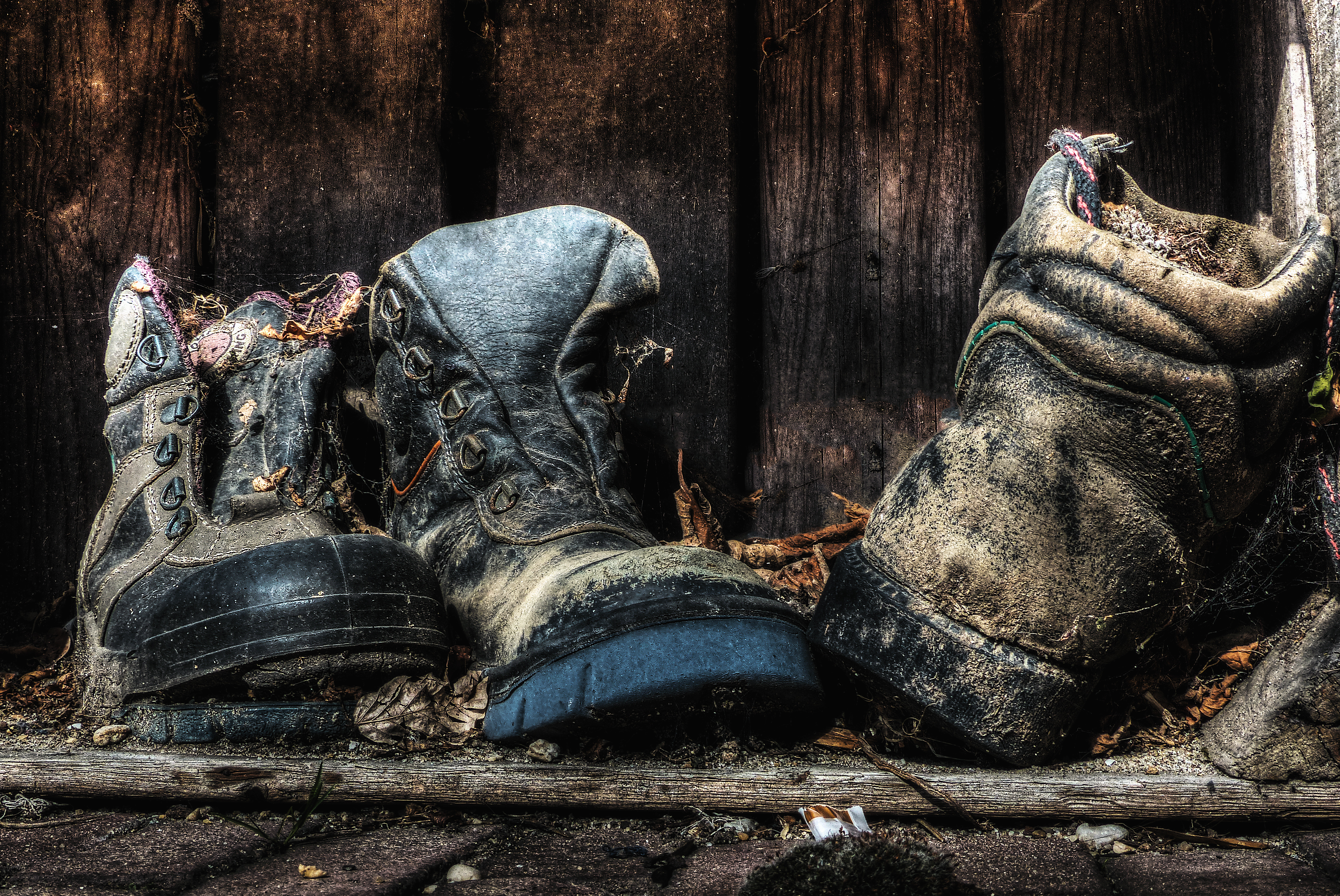 Toen ik dan ook vandaag in Sittard deze afgetrapte schoenen in een oud sinaasappelkistje ontdekte, zag ik er wel een hdr in en maakte een belichtingstrapje van drie opnames met telkens twee stops verschil.