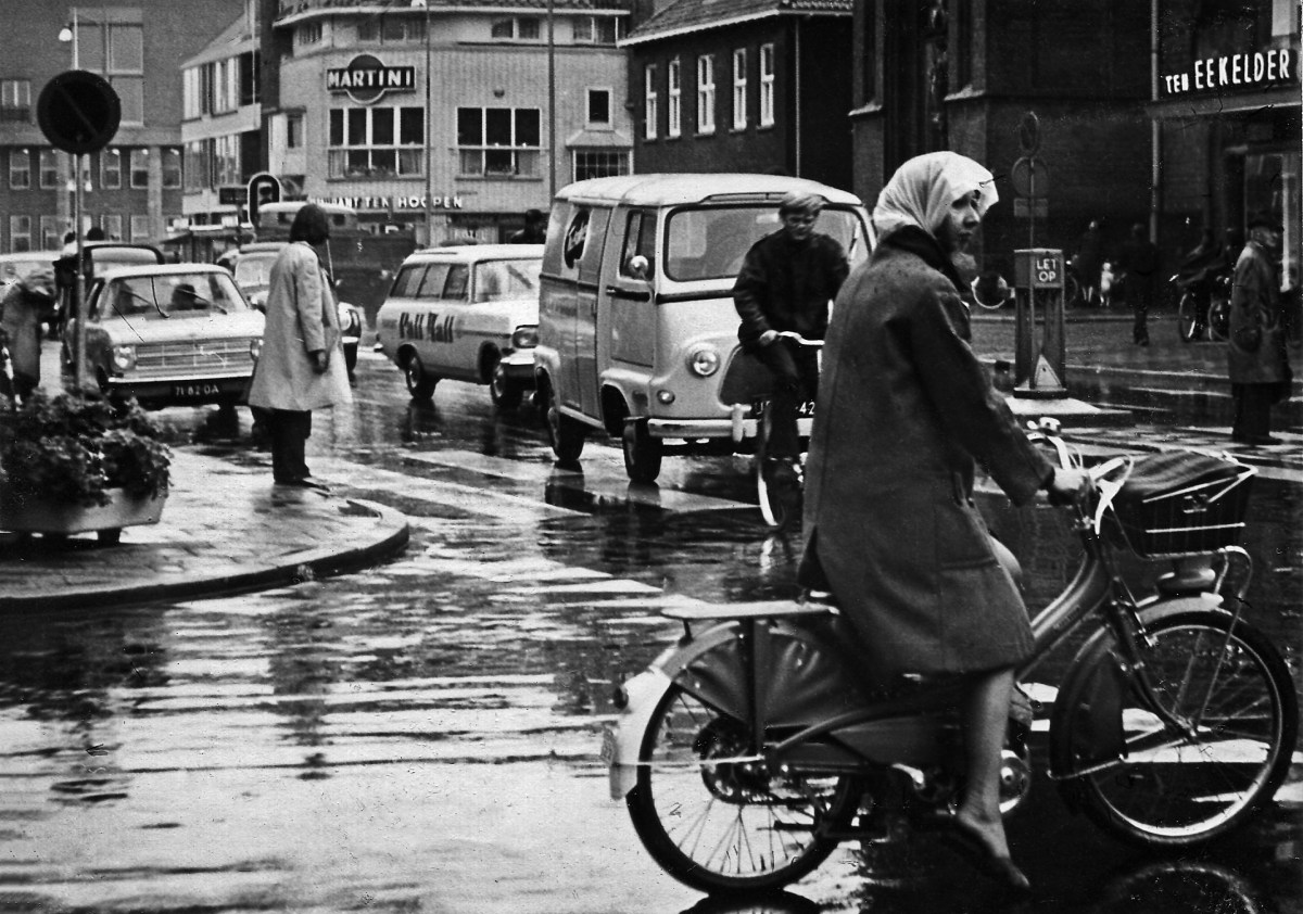 Hengelo op een druilerige namiddag ergens in de jaren zestig