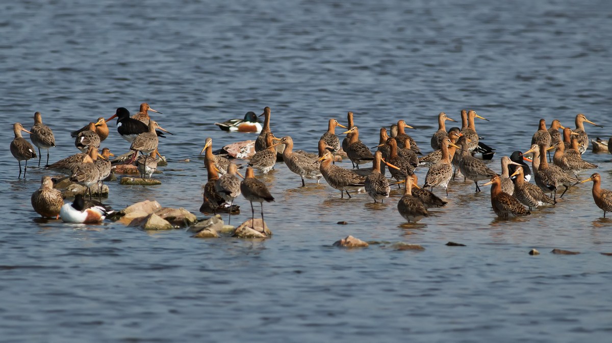 Tussen de grutto’s ook een paar scholeksters en slobeenden